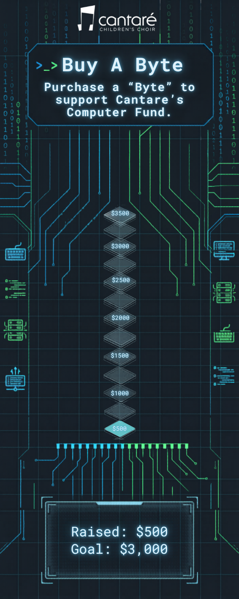 Cantaré Children's Choir is incorporated as a non-profit organization in the province of Alberta and is recognized by Revenue Canada as a charitable organization. As such, we issue Income Tax Receipts for gifts and charitable donations. Please contact our office to coordinate your donation.
